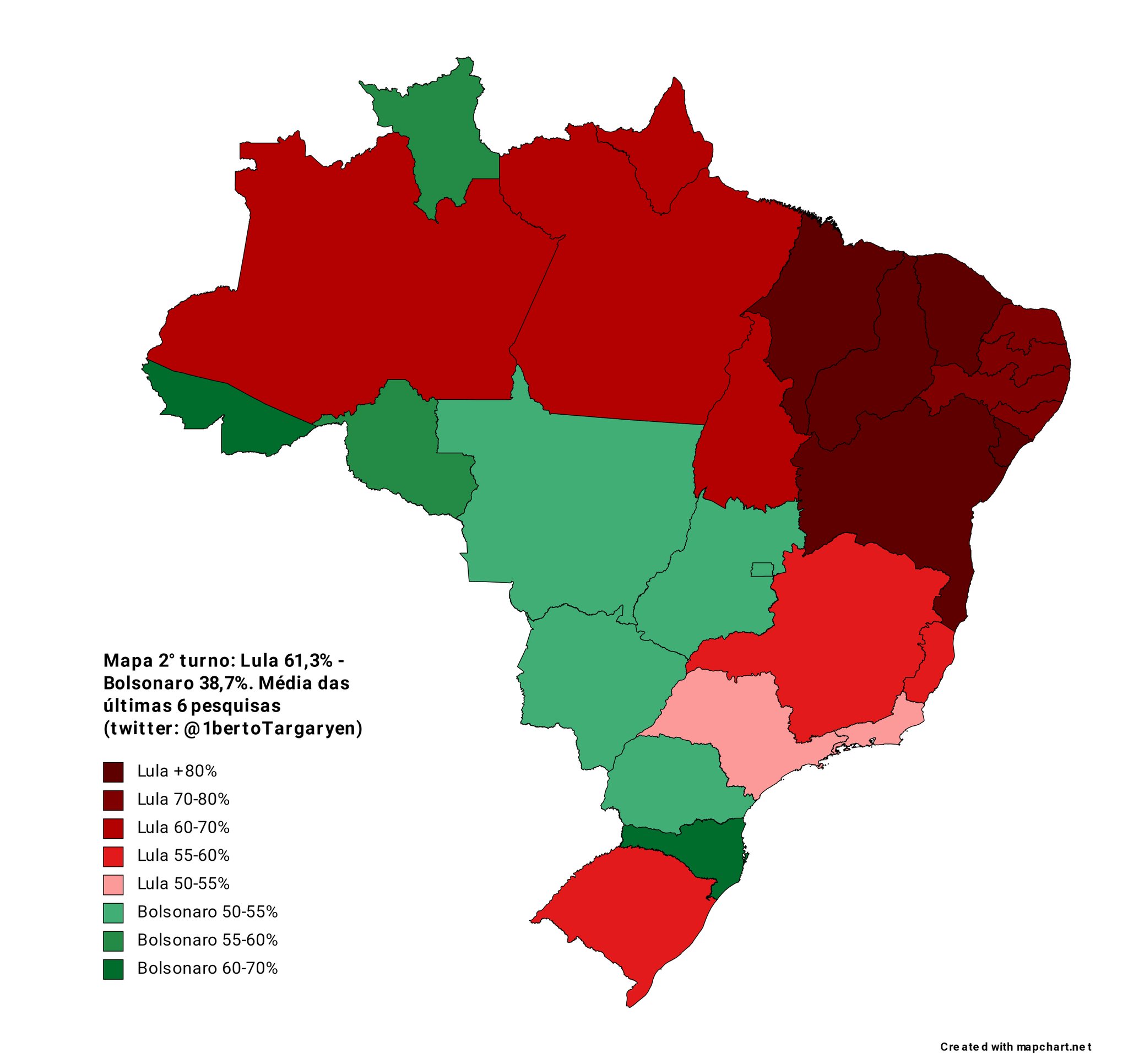 Lula (PT, centre-left): 58% (+2)